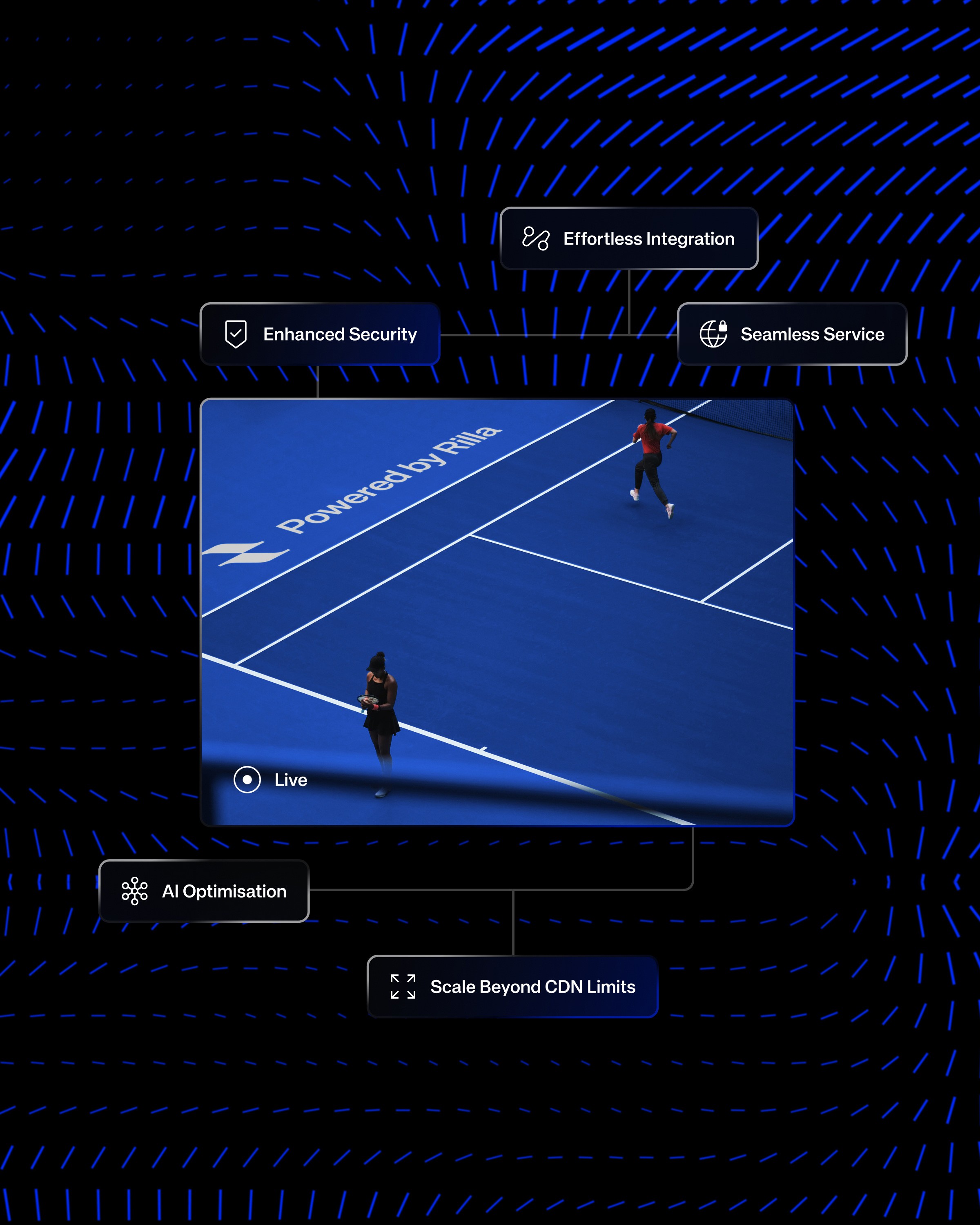 Rilla is ushering in a new era of intelligent streaming. As a world-first, AI-optimised peer-to-peer network, the brand required an identity that balanced extreme technical performance with unwavering reliability.